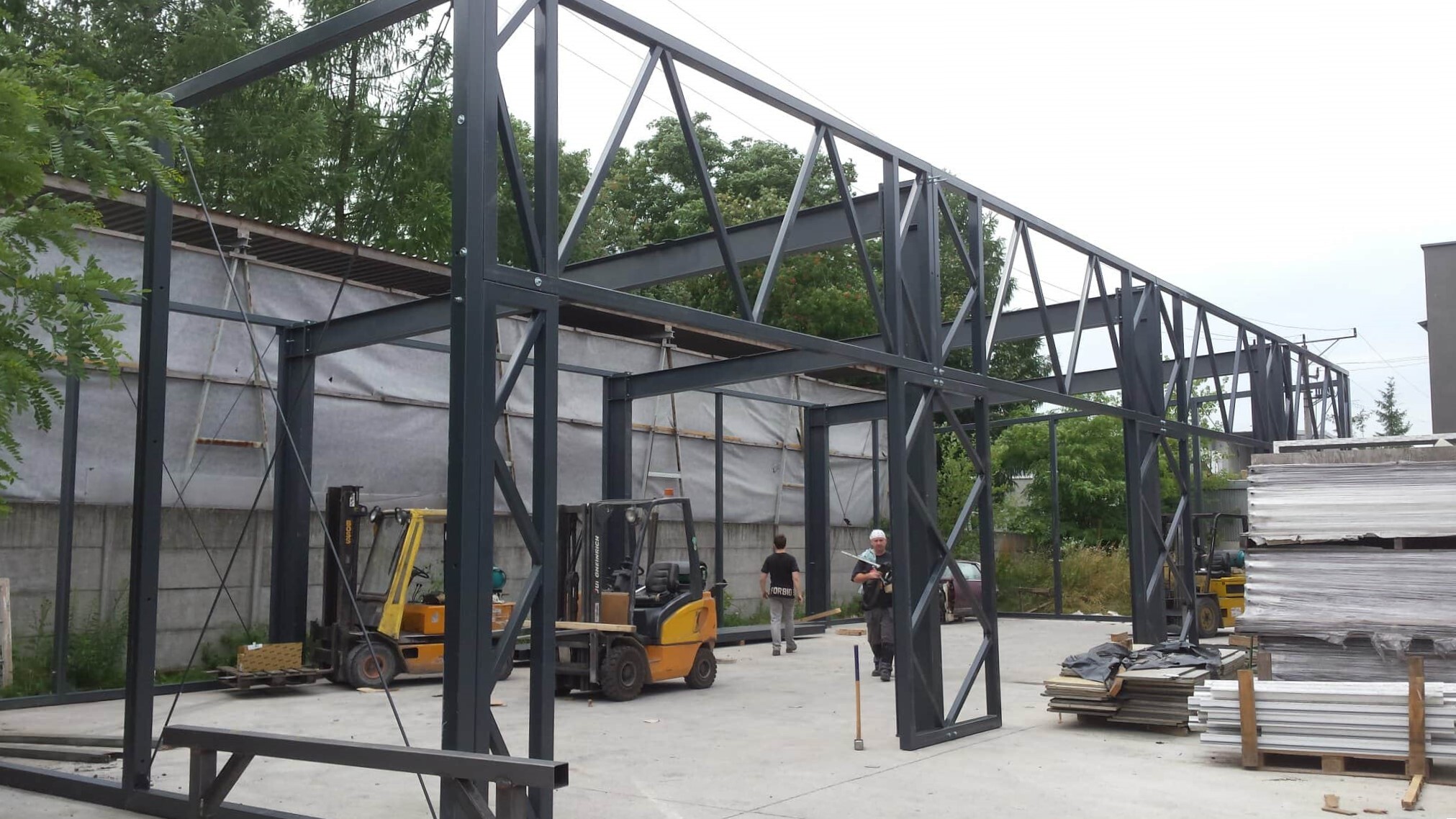W zakresie realizacji, mamy konstrukcje takie jak hale magazynowe i przemysłowe obudowane płytami warstwowymi jak i blachą, wiaty stalowe, garaże, altanki, schody i podesty z kratek Wema, chłodnie, piece do polimeryzacji farb proszkowych, barierki, bramy ogrodzeniowe oraz wiele więcej.